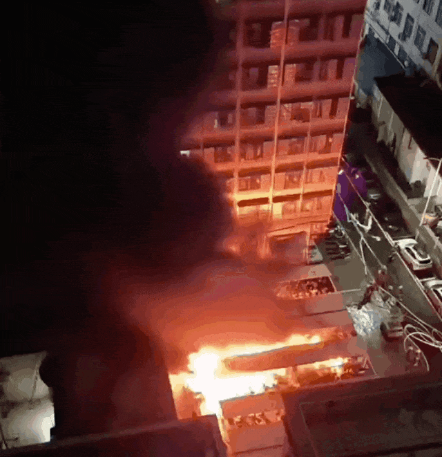 深圳一处室外电动自行车自燃,电动自行车成片燃烧。图源:深圳新闻网