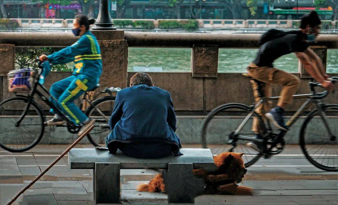 2020年3月16日,广东广州。一位老人坐在江边休息。(图 / 视觉中国)