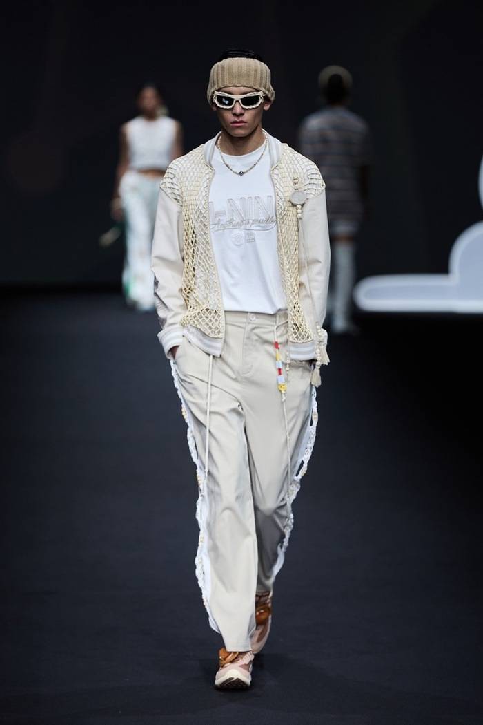 大秀分为四大篇章——“冒险的起点”“未知的挑战”“梦想的飞行”与“友谊的陪伴”,每一段都如同一次风格变奏:解构与重组、柔软与锋锐、复古与未来并置共存。从玩偶结构中提取廓形线条,以针织、串珠、亮片等多样材质表达玩具的质感世界;色彩灵感源于动画原色,拼接、撞色、套染大胆前卫,像是童年记忆的调色板在T台上被重新激活。
