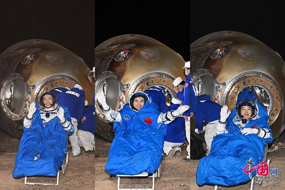 神舟十八号航天员叶光富、李聪、李广苏全部安全顺利出舱。(拼图)中国网发 汪江波 摄影