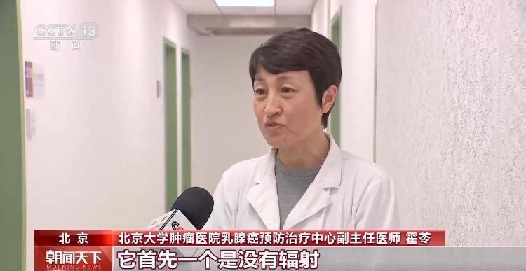 北京大学肿瘤医院乳腺癌预防治疗中心副主任医师 霍苓:(超声检查)首先是没有辐射,然后安全性好,所以不同年龄阶段的女性,年轻女性孕妇,还有需要频繁检查的女性都是可以经常做的。钼靶是一个X线检查,它是有辐射的,做的时候会把病人的乳房整个夹成一个片状,所以病人的耐受程度也会差一点。